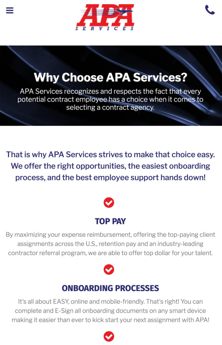 APA Services contracted 5D Spectrum to rebuild its website on the Drupal 8 platform, providing ATS integration with a custom API and a robust mobile experience.